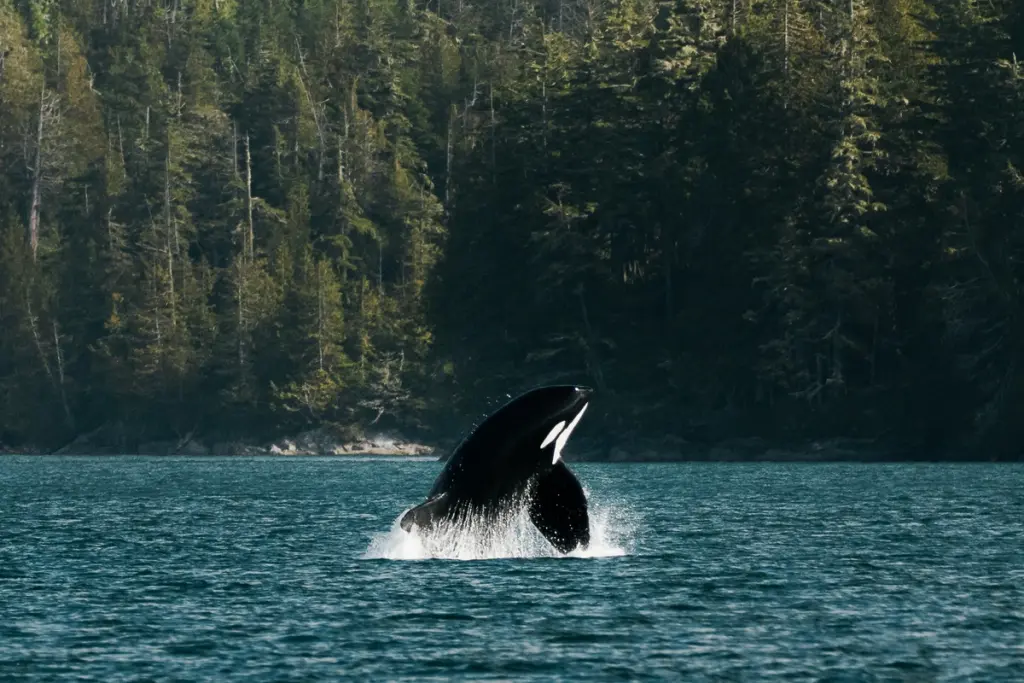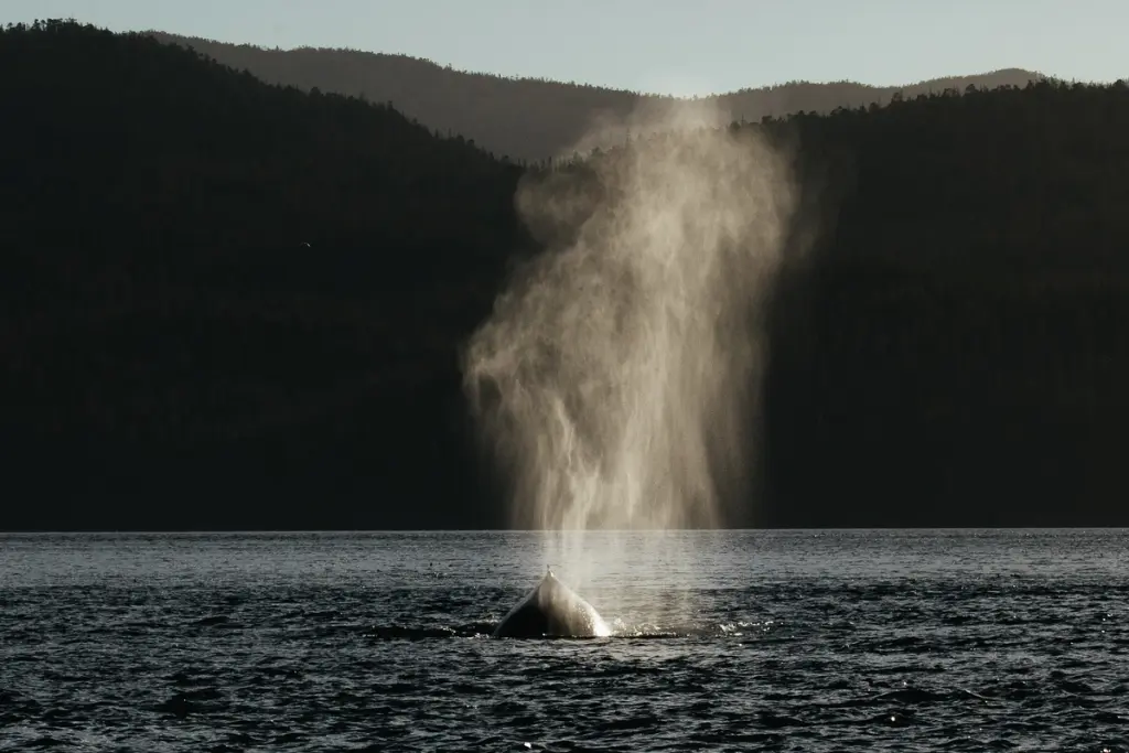 My head is on a swivel as I try to take it all in—humpback whales breach and spout in every direction, stretching as far as the eye can see. Even Pacific white-sided dolphins dart through the waves, adding to the party. The only sounds are the echoing blows of whales and the rhythmic click of camera shutters, yet the energy on the boat is electric. We drift with the current in the Johnstone Strait, captivated.