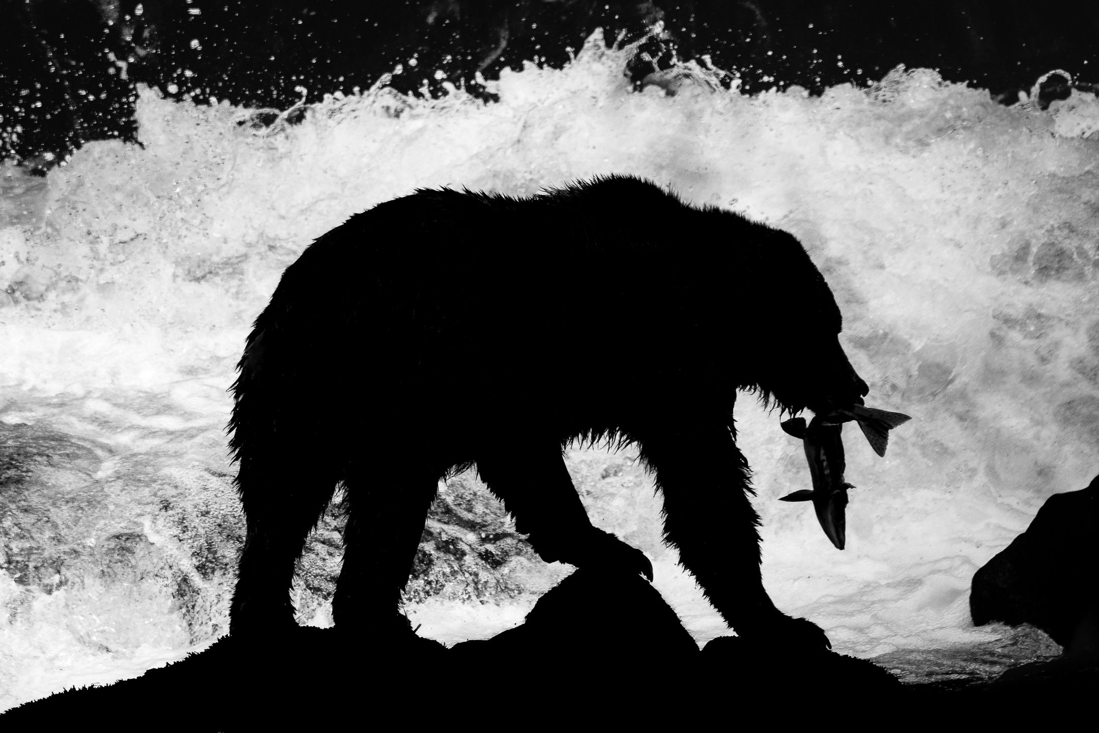 After glancing in our direction and sniffing us out, the mother bear deemed us no threat. She left her cub nearby and continued fishing, disappearing and then reemerging moments later with a thrashing salmon in her jaws. We sat riveted, front row, for hours as the mother taught her little one how to survive. I'll always remember the strength and power in her movements, the cub's curious gaze and clumsiness and the intimate beauty of the moment.