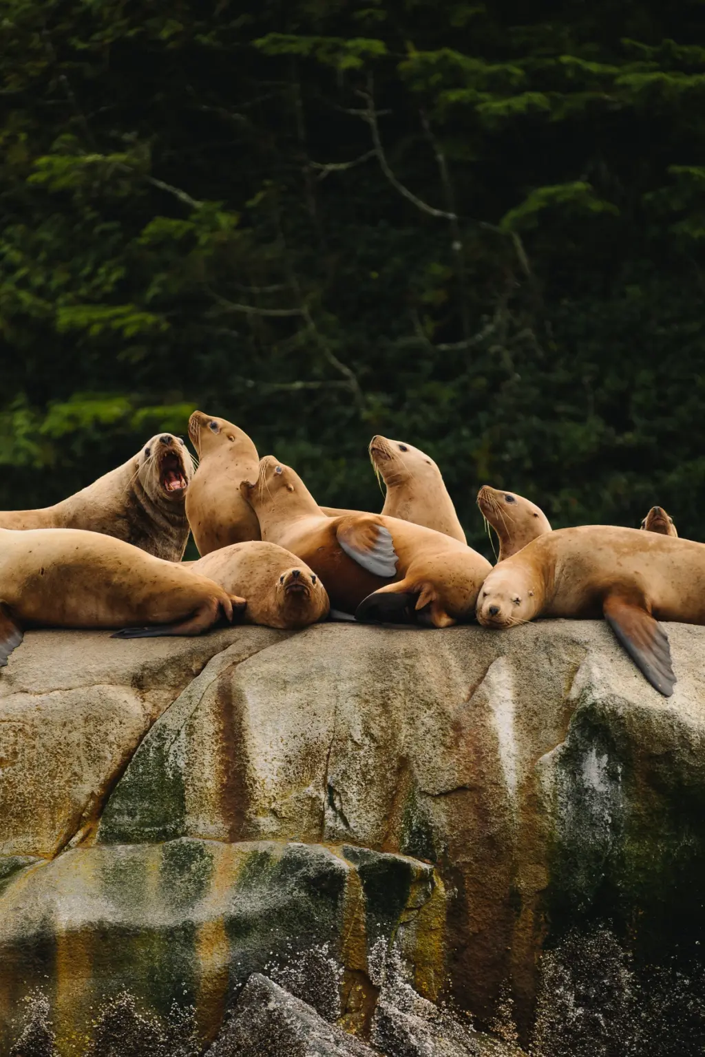 The Great Bear Rainforest (aka the GBR) is renowned for its biodiversity - there's no other place quite like it. You can find everything from coastal (sea) wolves, spirit bears (also known as Kermode bears—a rare subspecies of black bear where approximately one in ten bears carries a recessive gene that gives them a striking cream-coloured coat), sea lions and salmon to bald eagles, otters, dolphins, orcas and massive 1,000+ year old trees. If you're lucky enough, you could even see them all in a single day. The spirit bears are particularly significant to the Gitga'at and Kitasoo/Xai'xais First Nations who have protected these bears for millennia and now lead specialized ecotours to see them in their territories around Hartley Bay and Klemtu.