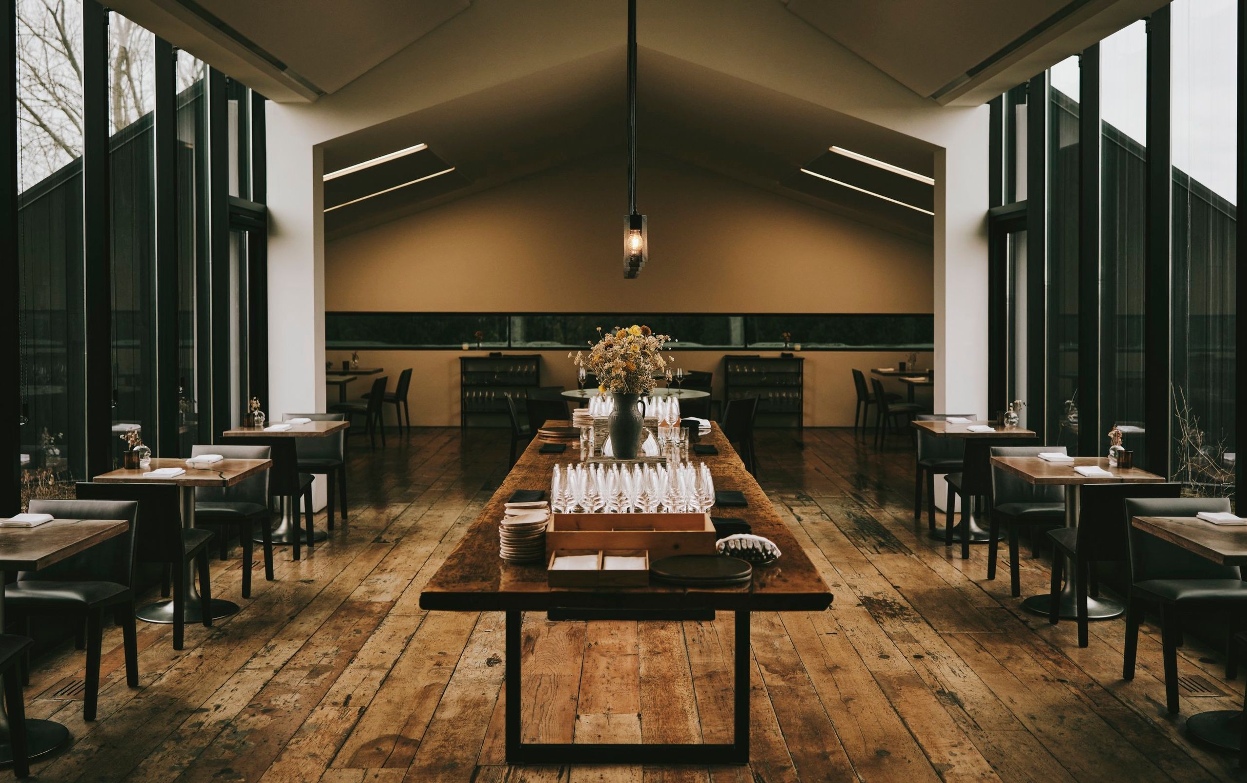 Restaurant Pearl Morissette’s dining room is located on the upper floor of a minimalist, barn-style building. We were seated right by the expansive windows - giving us unencumbered views of the garden (and ducks and cats).