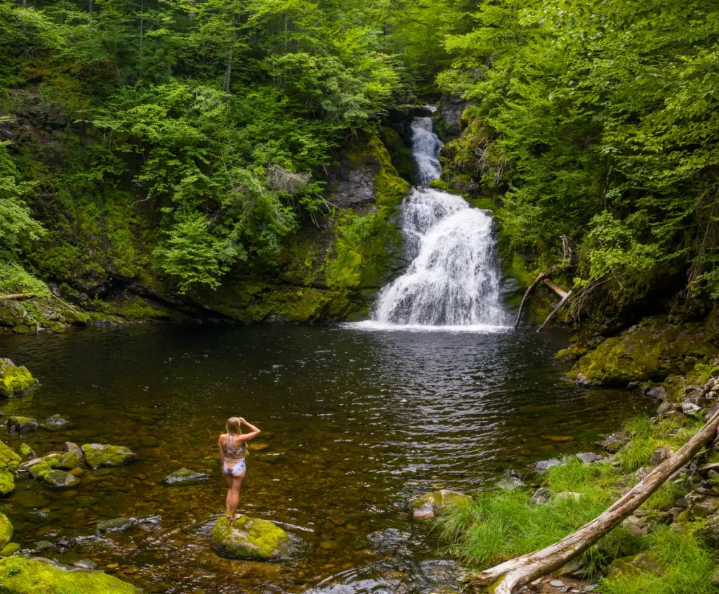 The staggeringly beautiful highlands of Cape Breton are full of waterfalls, lakes, and quarries that beg to be dived into and floated upon. Here’s how to dip your toes in pristine wild swimming spots while enjoying gorgeous restaurants and accommodations on a long weekend road trip around the Cabot Trail.
