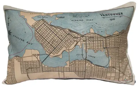 Scatter these comfy down-filled pillows anywhere you please. Each has a favourite Ontario location printed on the 100% linen cover; think Georgian Bay, Muskoka, and the City of Toronto itself. Images: Vintage Map Co.