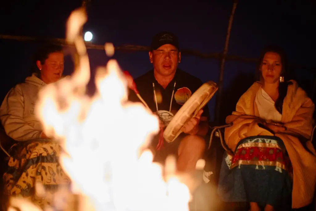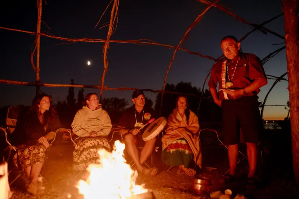 After the Pow Wow, we enjoyed an incredible dinner in the grandiose lodge at Shingwauk Kinoomaage Gamig, a groundbreaking Anishinaabe education institute. That evening, under a beautiful sunset and moonrise, we sat around a fire in the teaching lodge as Chief Sayers held ceremony and told stories. It was the perfect way to end our first day.