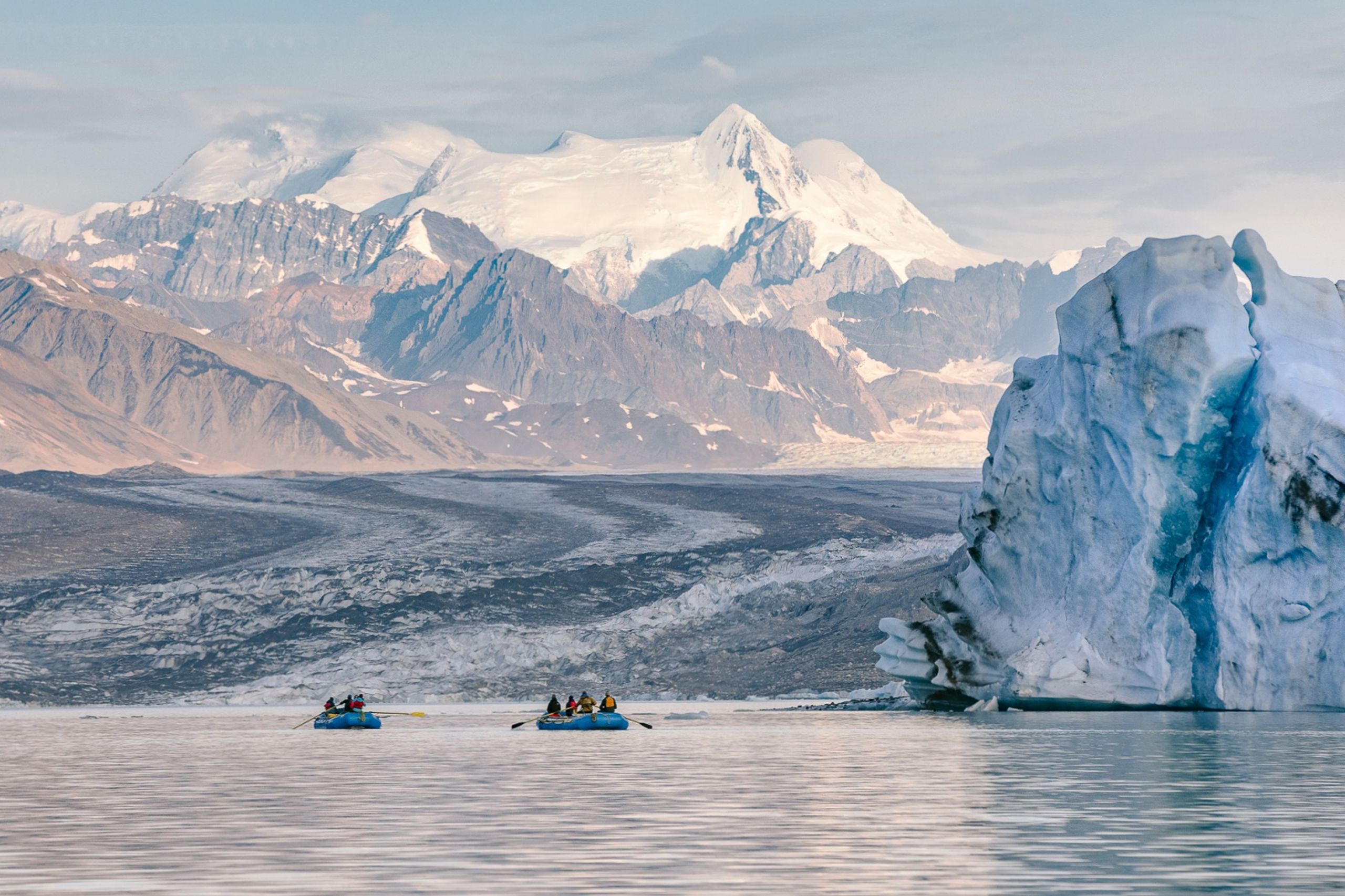 I first learned this in 2019, on a rafting trip with Canadian River Expeditions down the Alsek River to Lowell Lake, near the BC-Alaska border. For seven days, I felt impossibly small as the landscape shifted around me. We hiked and lounged along the riverbanks, savouring meals and desserts made possible by boat travel. We paddled beside icebergs taller than apartment buildings - mere specks compared to the icefields and 4,500-metre peaks towering behind them. That trip sealed it for me.