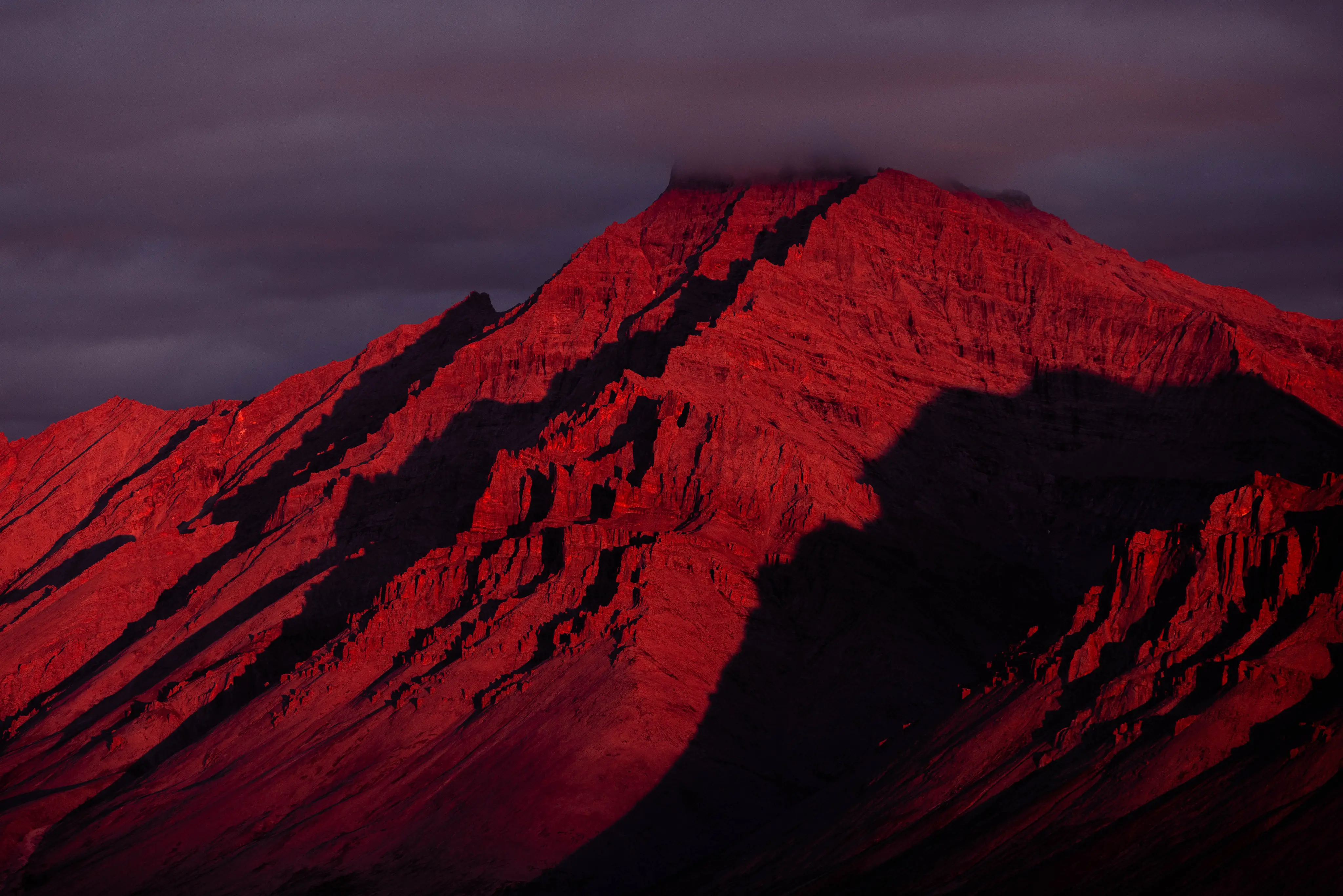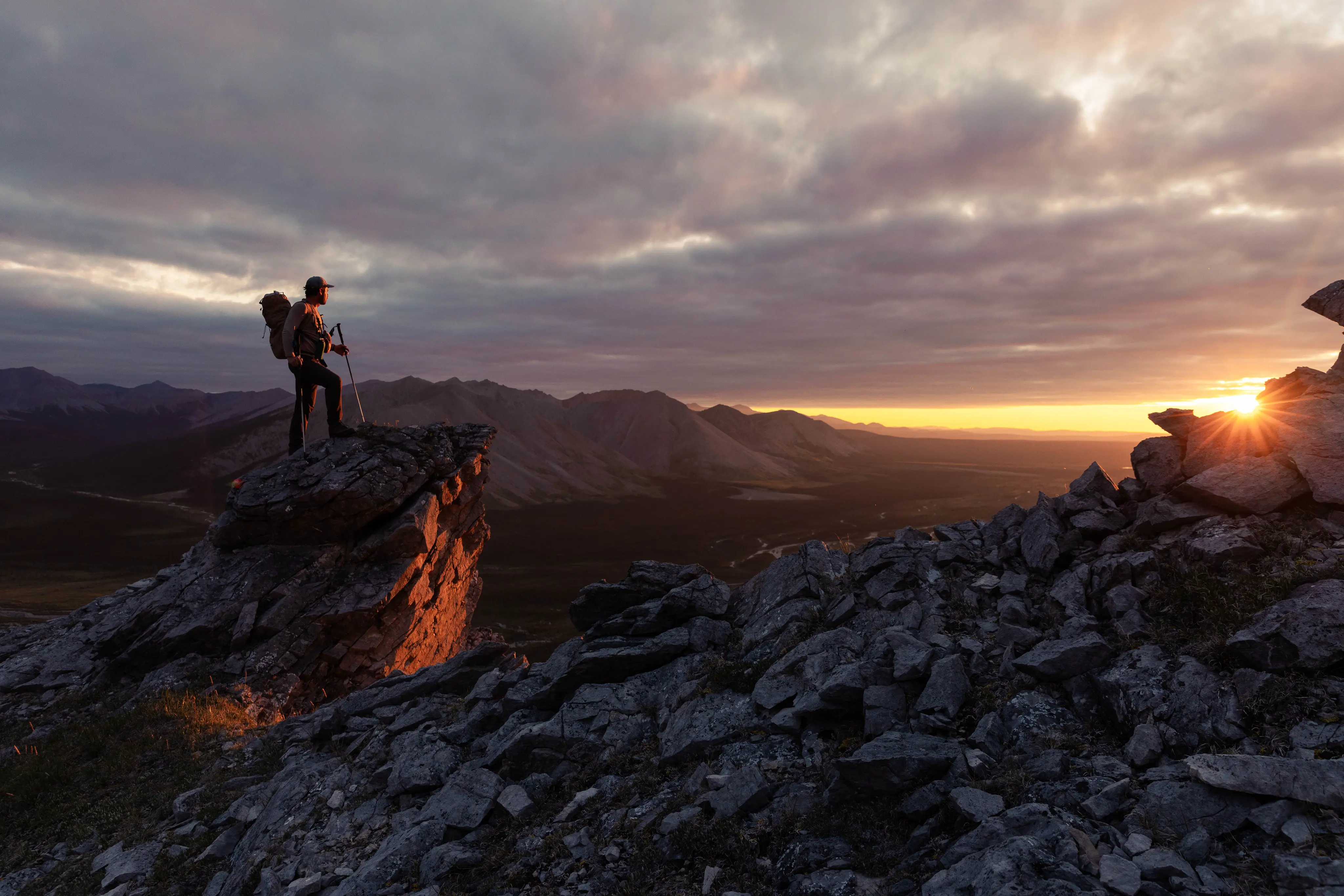 In summer, this far north, it never gets dark enough to need a headlamp. That endless twilight kept us outside for hours - something the mosquitoes seemed to appreciate. One evening, on a gray and rainy day, we noticed a strip of clear sky on the horizon where the sun would set. It was our cue to get up high to watch a light show unfold. Breathless from the climb, I turned to see the subarctic landscape awash in a warm orange glow. It looked like a sea of golden larches in full autumn colour. As the light climbed toward the summit of Royal Mountain, it deepened into a rich crimson, and I felt like I was dreaming.