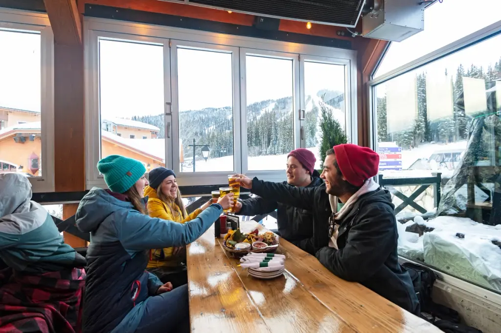 The village has lots of great options to suit every palate. For coffee, there’s Bolacco Caffe and Vertical Cafe, both of which are excellent; for pizza, there’s Mountain High; for German food, there’s Powder Hounds (the schnitzel is a must); for meat and potatoes, there’s the Steakhouse (order a dirty martini to go with your beef—you won’t regret it); for pub food, there’s Cahilty Creek Kitchen (get the green curry or the burger) and Bottoms (a word to the wise: tempting as it may be, don’t ring the bell above the bar unless you want to buy a round of drinks for the entire place); and for treats, there’s Baby Doh’s mini donuts and Rocky Mountain Chocolate (a Canadian ski hill staple!). And just outside of the village, there’s Ohana Deli for a great local selection of meats, cheeses, and premade meals.