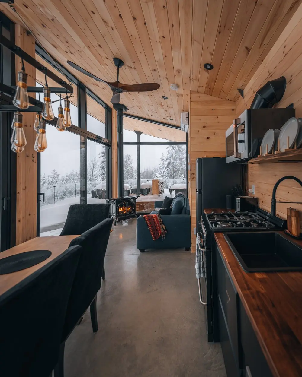 Lagöm, a Swedish word meaning “just right,” perfectly describes the experience at Maelström Mountain. These modern cabins are designed for balance—neither too big nor too small, just right. Located near Mont Tremblant, Lagöm offers easy access to skiing, snowboarding, and other winter activities. After a day on the slopes, unwind in your cozy cabin, sip hot mulled wine, and watch the snow fall outside. It’s the perfect blend of adventure and relaxation.