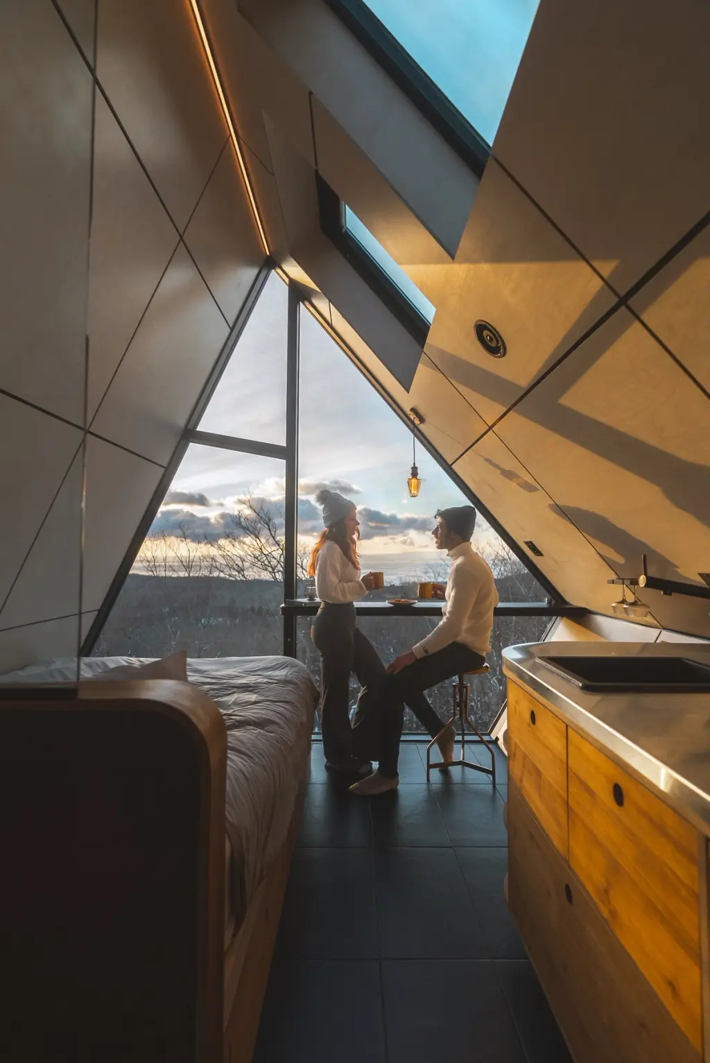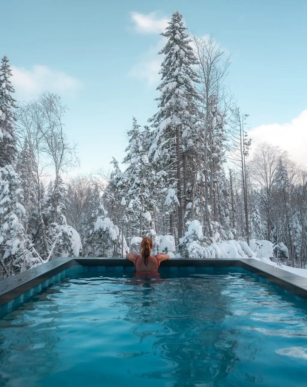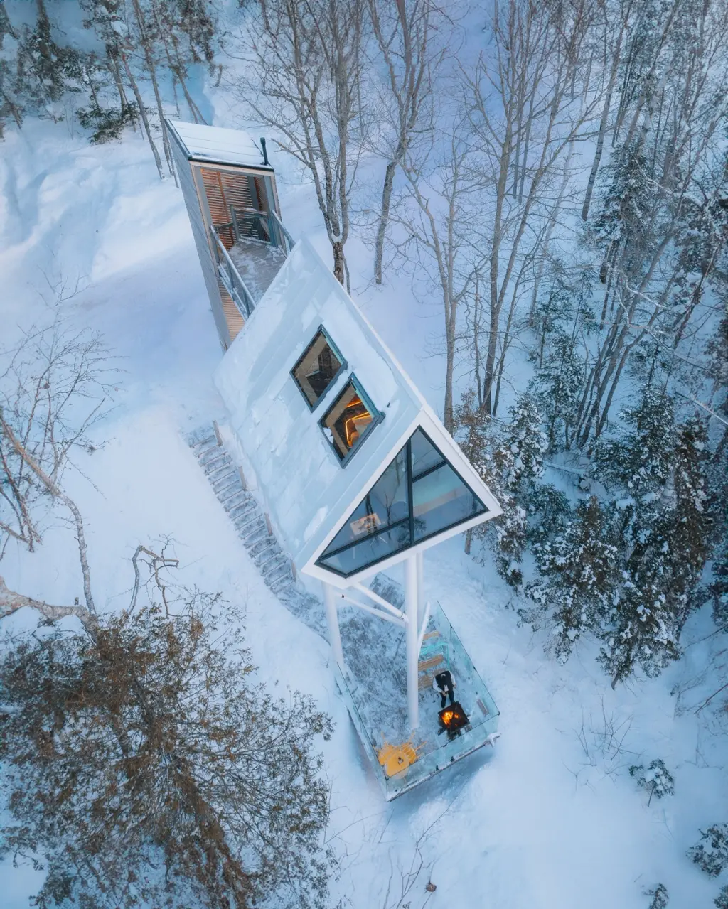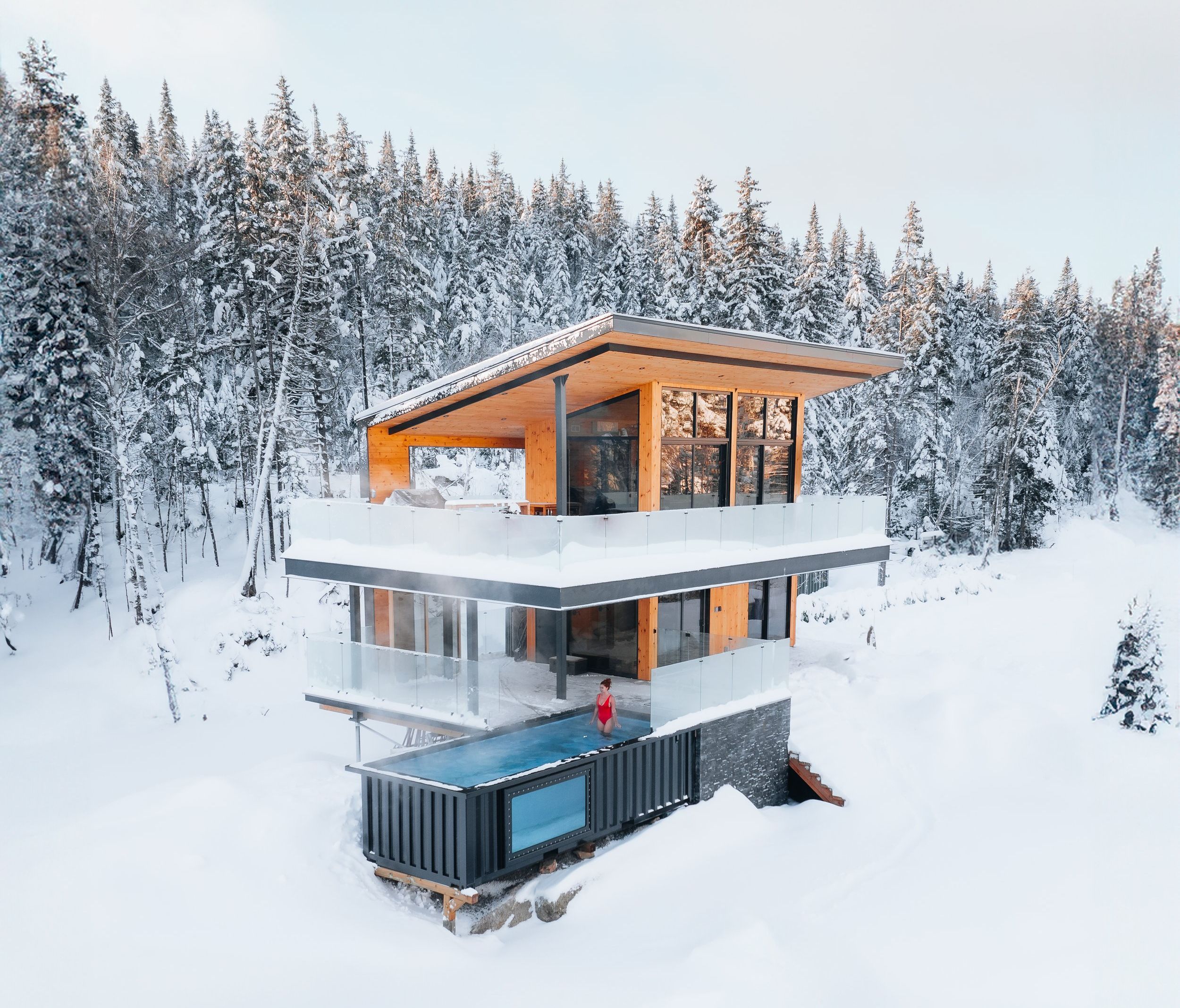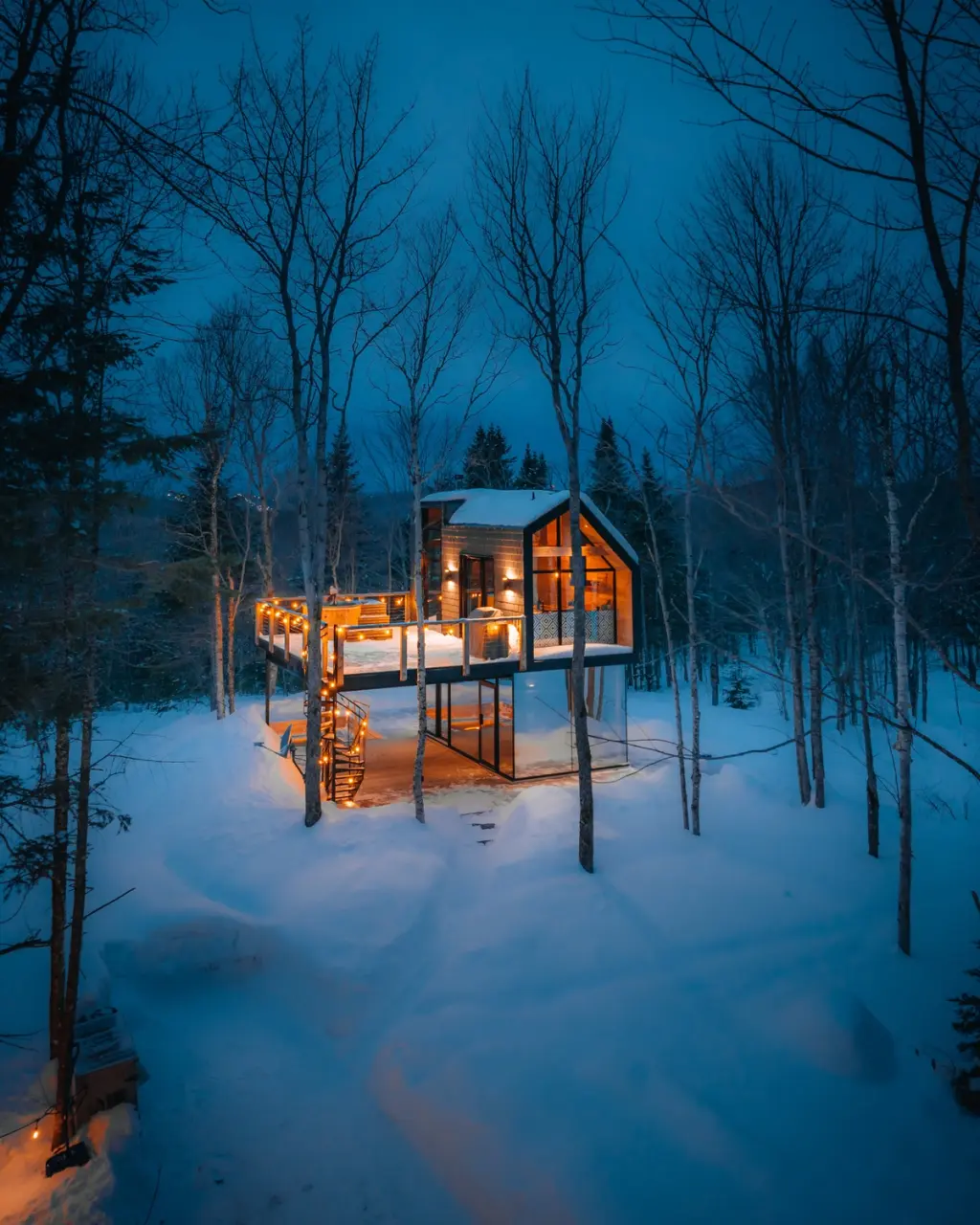 Nestled amidst the snow-covered forests of Charlevoix, UHU at Repère Boréal offers an intimate retreat for couples and families. These minimalist cabins blend seamlessly with nature, allowing you to disconnect from the digital world and reconnect with the tranquility of the outdoors. Imagine waking up to the soft glow of morning light filtering through the trees, sipping hot cocoa by the wood stove, and soaking in your private outdoor hot tub. UHU cabins are the epitome of cozy, snug, and utterly delightful.