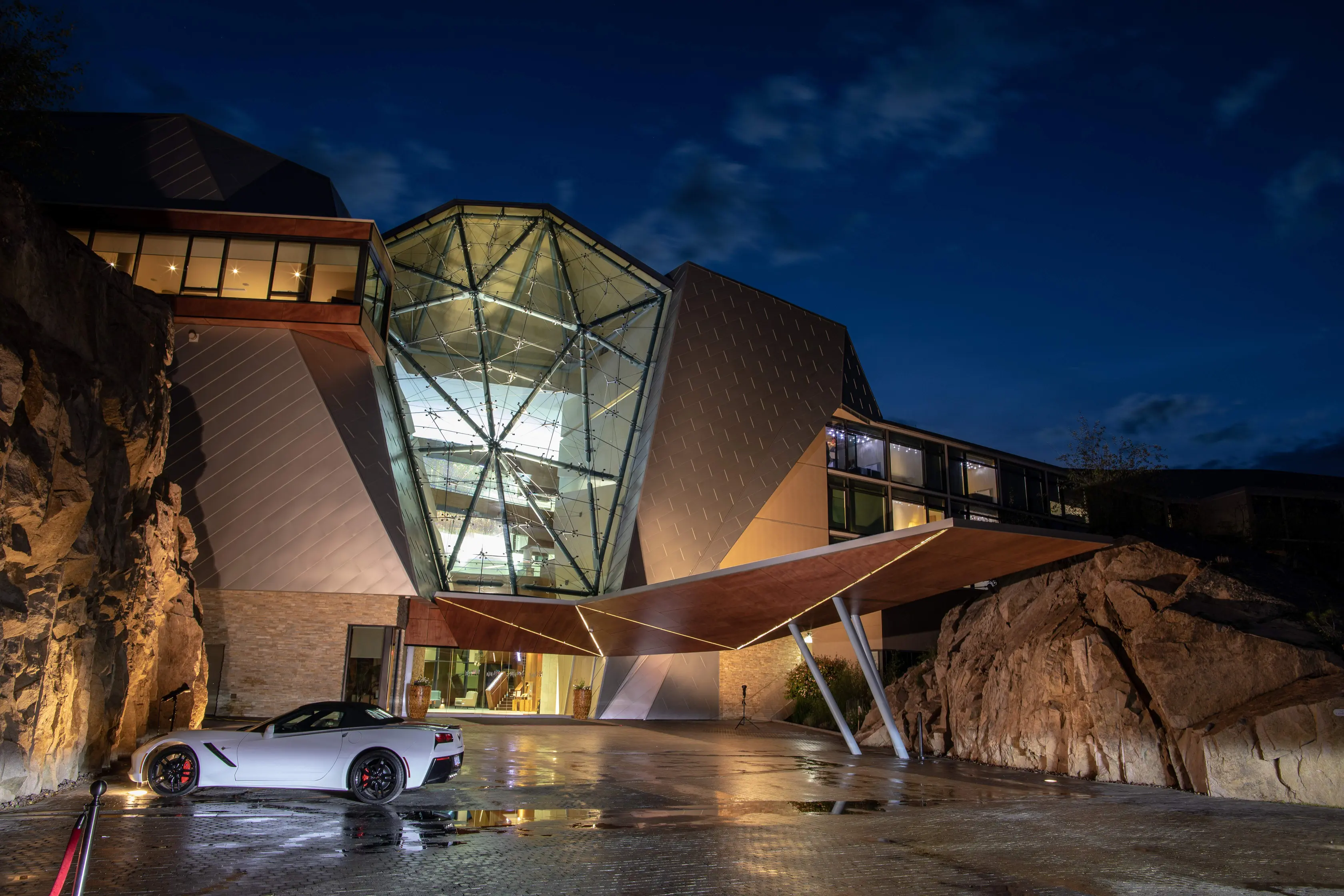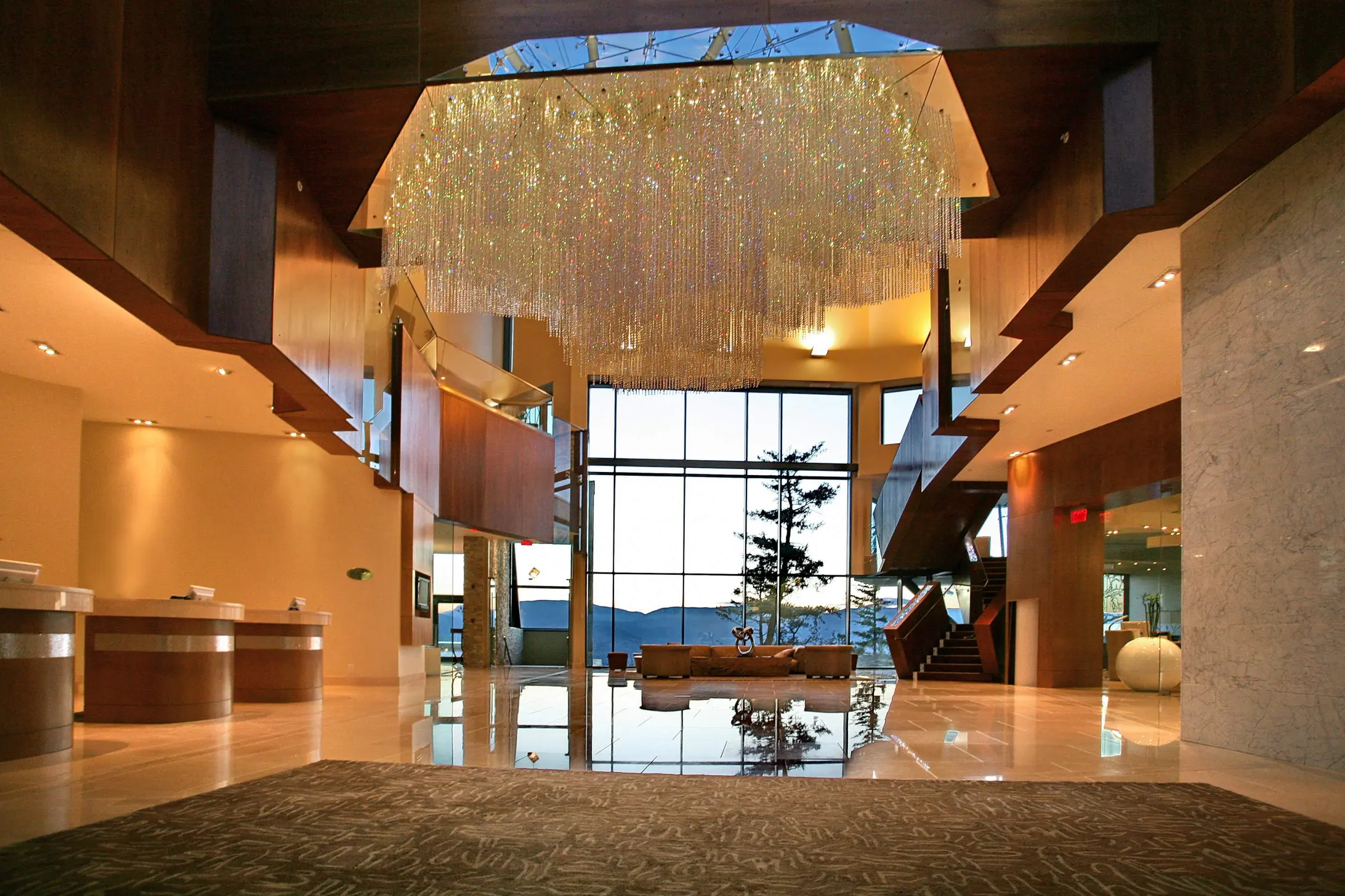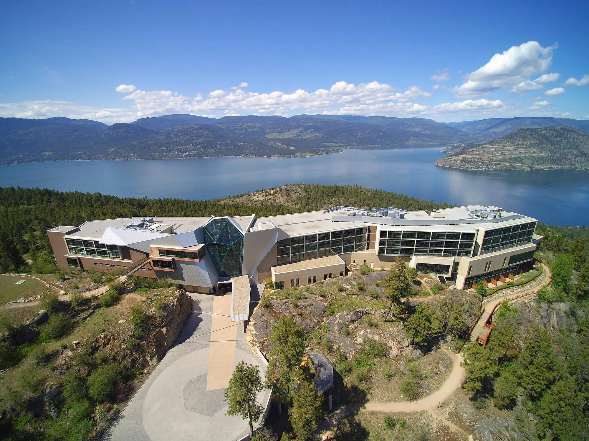 The approach to Sparkling Hill Resort builds anticipation. You leave the vibrant city of Vernon and follow a winding road up into the Predator Ridge community. The property sits on a granite bluff high above Okanagan Lake, and as you drive upward the view broadens until the resort’s modern glass façade appears at the top. The building glitters in the sunlight thanks to the more than 3.5 million Swarovski crystals that are integrated throughout the architecture. Conceived by Gernot Langes-Swarovski, patriarch of the Swarovski family, the resort was designed to bring European spa traditions to the Okanagan. From its hilltop perch you can see the Monashee Mountains to the east and Lake Okanagan to the west, setting the scene for a restorative getaway.