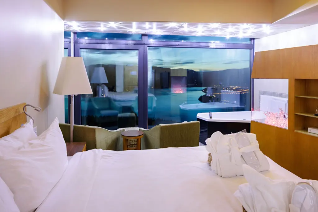 Sparkling Hill is an adult-only wellness resort with 146 modern rooms and three penthouse suites. In addition to Lake View rooms, travellers can choose Mountain View rooms or Penthouse suites that provide both mountain and lake panoramas and a private sauna. Pet-friendly and accessible rooms are also available.