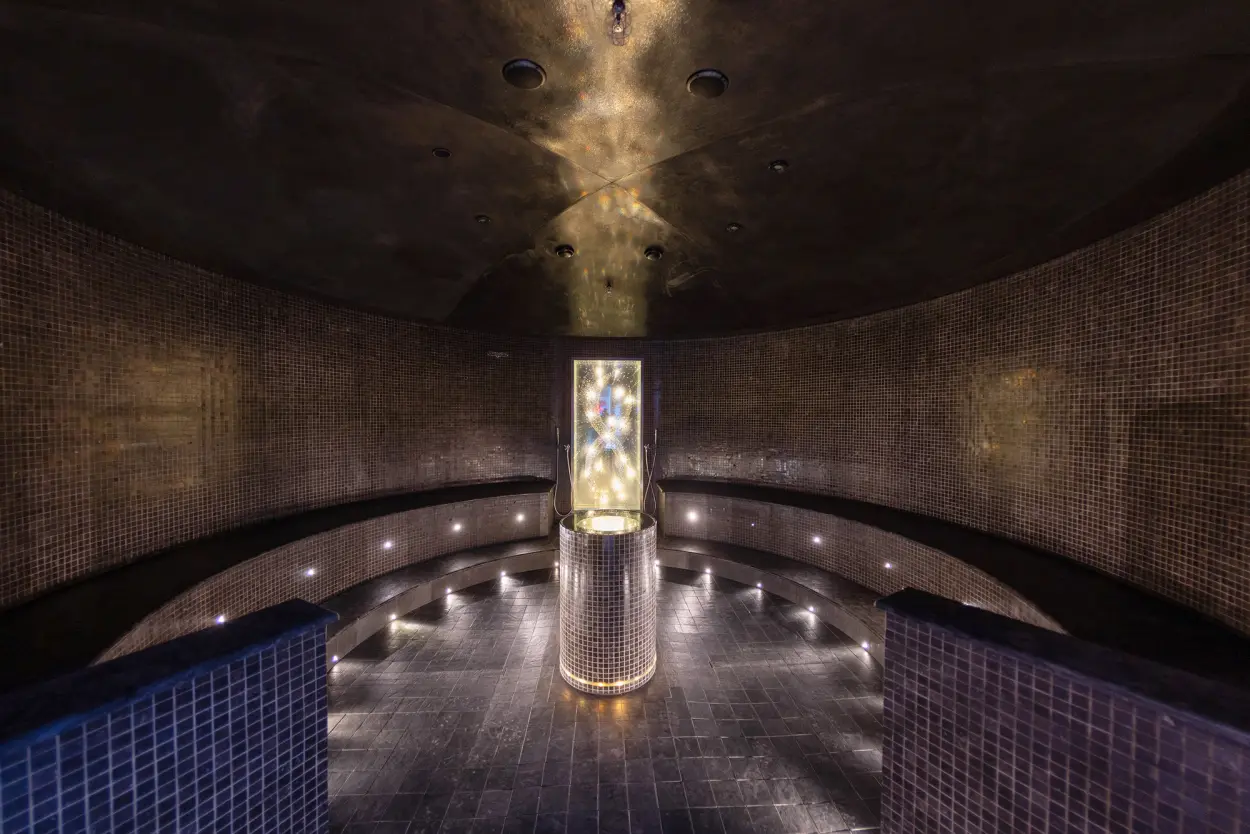 KurSpa’s signature steam and sauna circuit features seven unique rooms, each with its own temperature, scent, and sensory focus. We kept returning to the Crystal Steam room, where eucalyptus-scented vapour swirled around glimmering Swarovski crystals in a soothing 40°C mist. Another favourite was the Panorama Sauna, a cedar-lined space heated to 80°C, with windows framing an expansive view of Okanagan Lake. Cooler options like the Aqua Meditation Steam offered citrus-scented mist and gentle water sounds for a calming reset, while the Igloo room mimicked a frozen cave with peppermint air and crackling ice effects. Experiential showers complete the circuit with programs that mimic tropical rainstorms and gentle mists.
